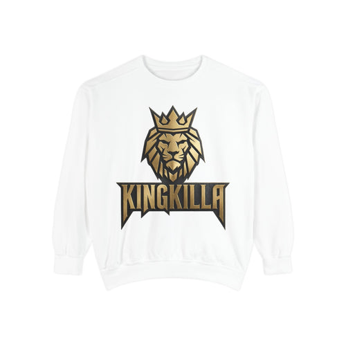 This relaxed-fit garment-dyed sweatshirt blends streetwise attitude with wearable comfort. The front features a bold, gold-embossed lion crest and KINGKILLA lettering that catches light and attention, while the back carries a circular typographic motif and star detail for a subtle, reflective statement. Medium-heavy fabric and soft ring-spun cotton give it a substantial, lived-in feel that only gets better with time. Thoughtful construction—ribbed collar, cuffs and hem, neck twill tape, half-moon back patch and a sewn-in twill label—keeps the silhouette tidy and comfortable. OEKO-TEX low-impact dyes and the option for embroidered chest accents add quality touches you’ll notice every wear.
